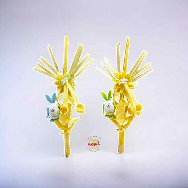 Esta bonita  palma de pascua de unos 30 cms decoradas con un original huevo con detalles de fieltro sorprenderá sin duda a tus padrinos el Domingo de Ramos.