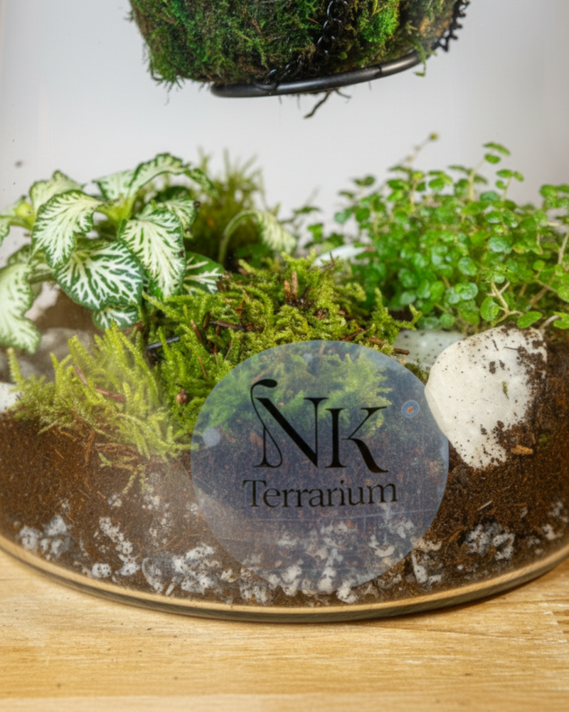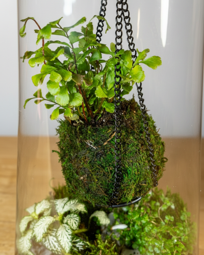 Nota: al ser un producto vivo y artesanal, la forma exacta de la fittonia/Adiantum/Soleirolia puede variar ligeramente manteniendo siempre el estilo Wild Orb.