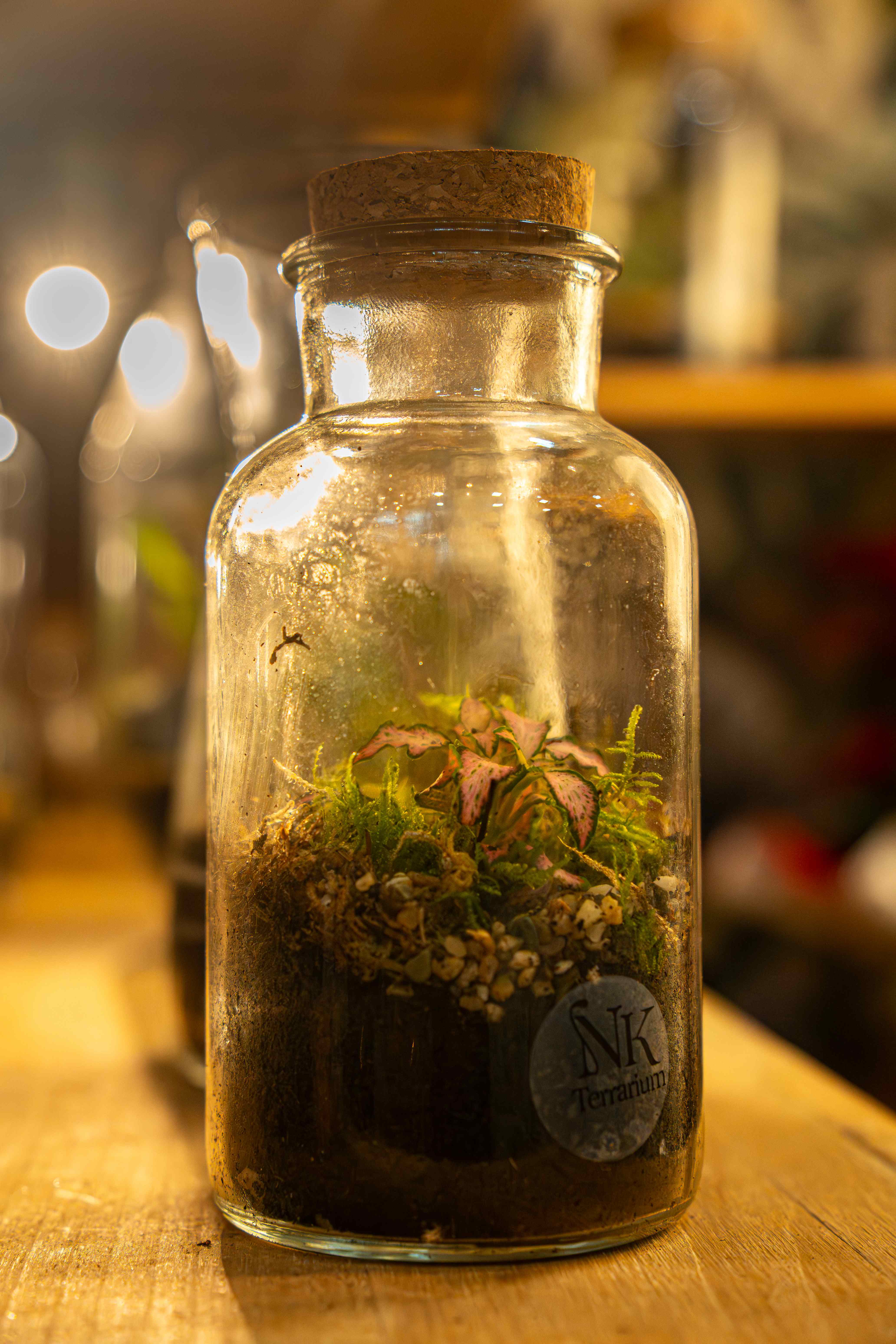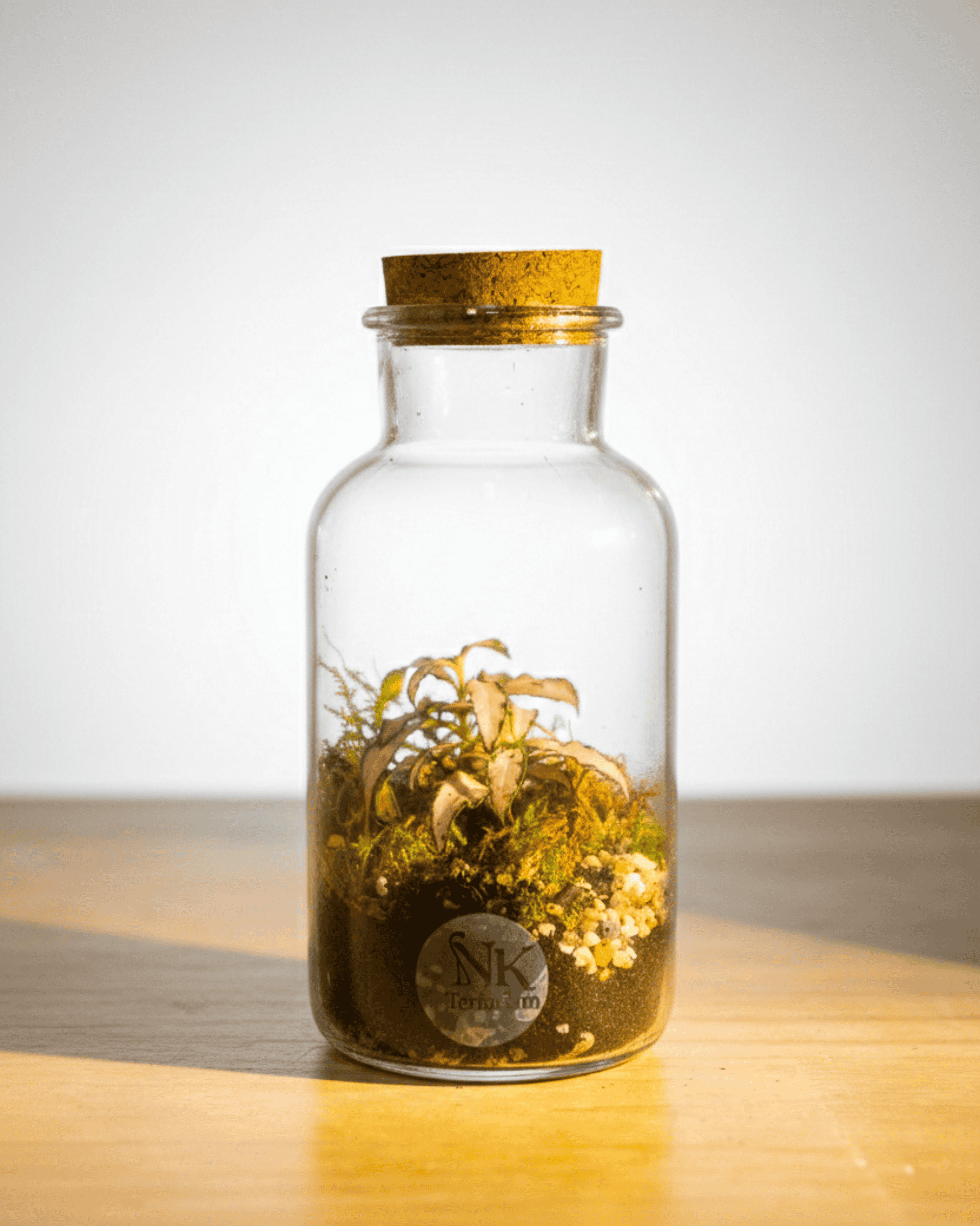 Un pequeño paisaje natural dentro de una botella de cristal con tapón de corcho, creado para aportar vida y frescura a cualquier rincón. Este terrario combina la intensidad del musgo con el toque de color de la fitonia, formando una composición delicada, elegante y muy decorativa con auténtica esencia “jungle”.